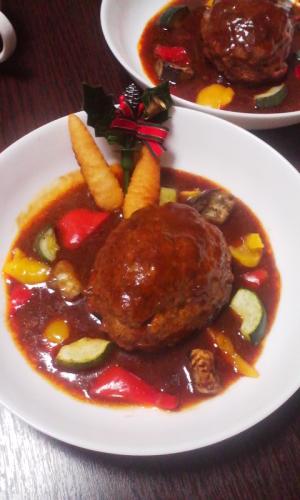 ゆみぴいの yummy yummy キッチン クリスマスディナー 三色当たり玉煮込みハンバーグ